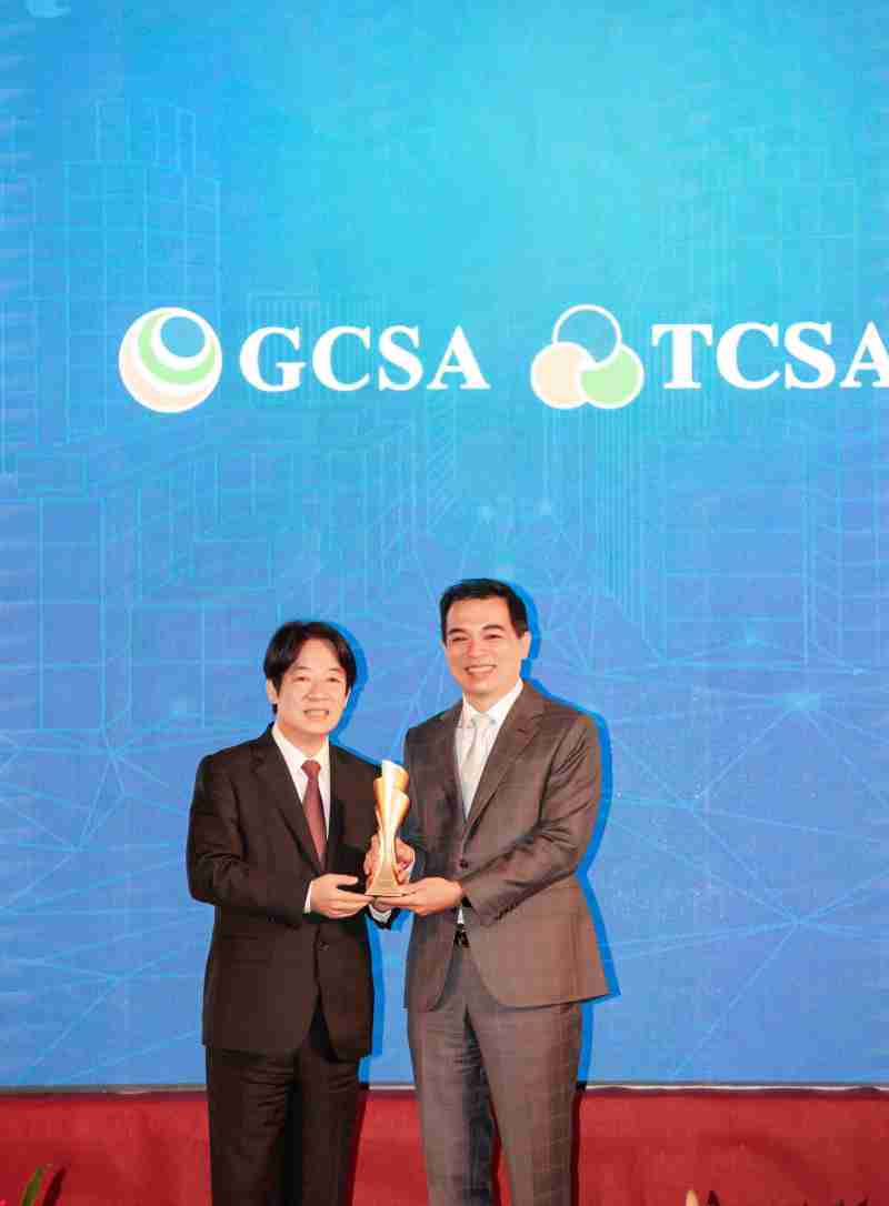 达全方位永续表现获全球永续奖及台湾永续奖肯定,,,由副总统赖清德颁奖 (左),,,,z6mg·人生就是博总经理柯富仁 (右) 代表领奖