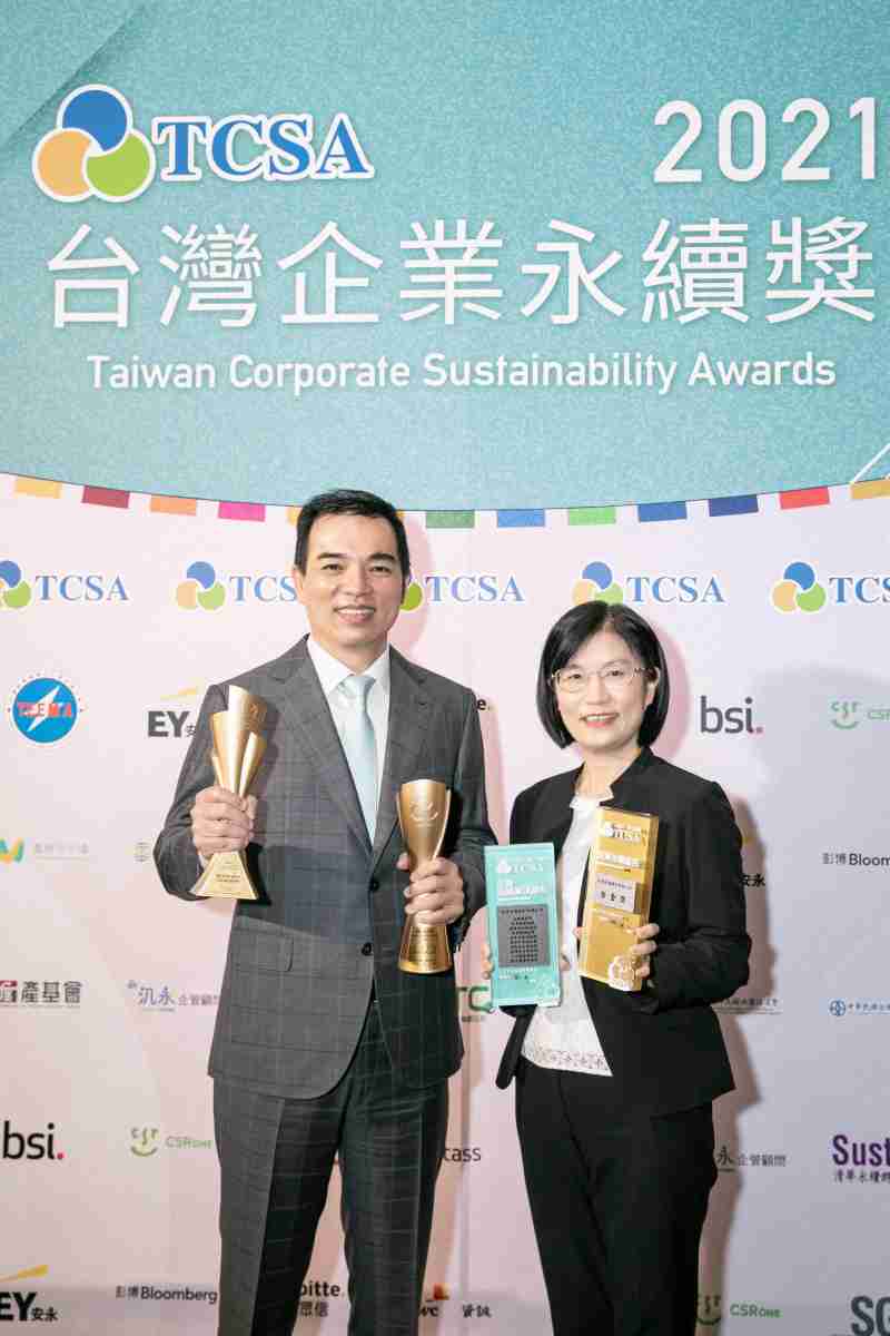 达在台湾永续奖所评比环境、、、、社会、、、治理等各面向的永续绩效均获高度肯定 (左:z6mg·人生就是博光电总经理暨营运长柯富仁,,,,右:z6mg·人生就是博光电永续长古秀华)